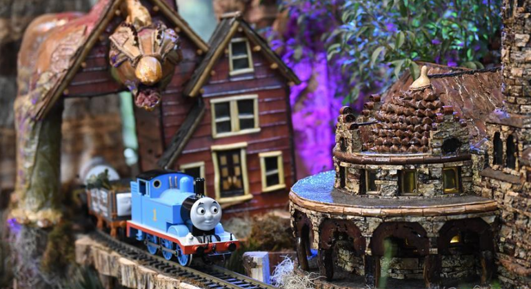 11月28日,游客在昌黎縣劉臺莊鎮(zhèn)白棗林村的玉米秸稈迷宮內游玩(無人機拍攝)。