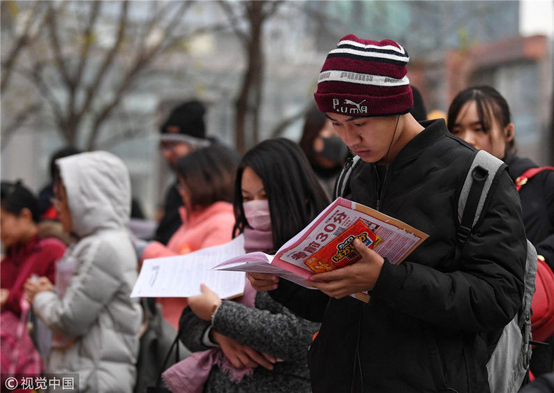 2018年12月2日,北京,在呼家樓中學考場,考生正在抓緊時間進行復習。北京青年報 郝羿/視覺中國