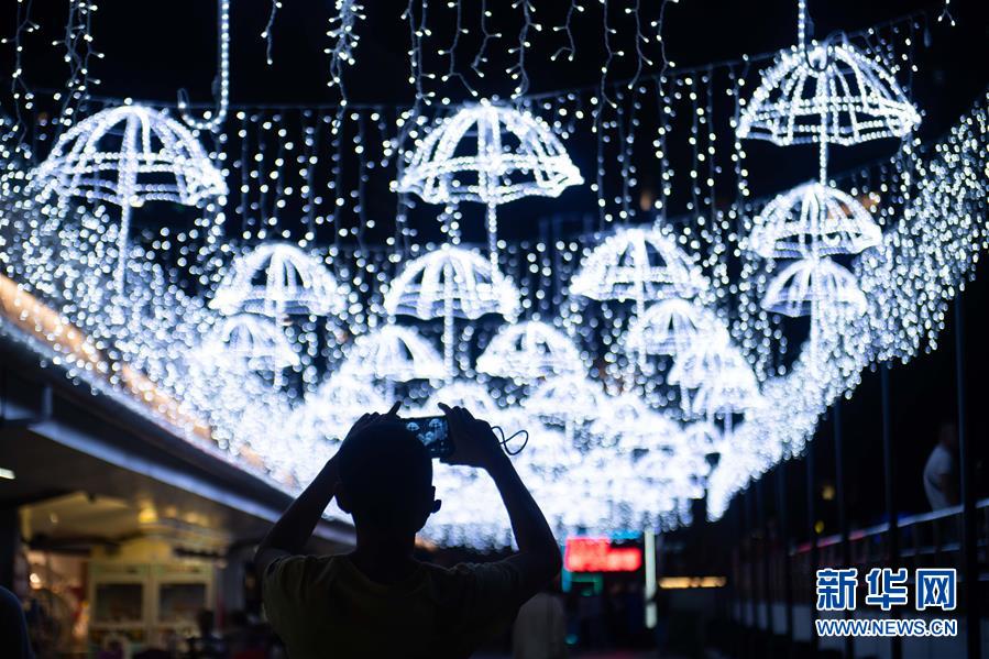 12月2日,游人在欣賞光影節(jié)燈飾。 新華社記者 張金加 攝