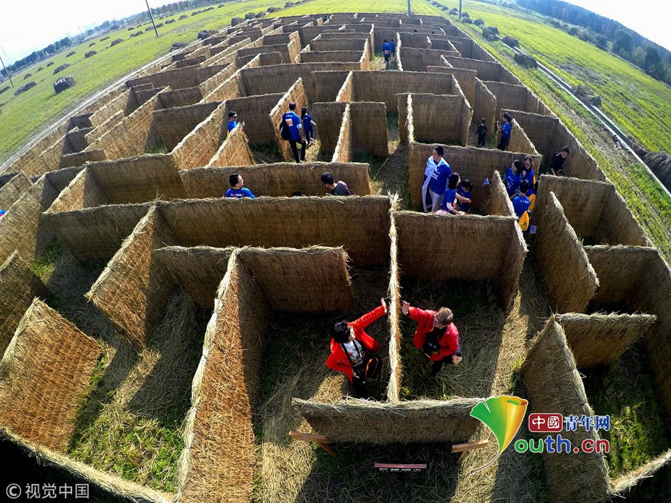 其中還有一個(gè)占地一畝多的稻田迷宮,游人穿梭在秸稈做成的迷宮里,別有一番獨(dú)特質(zhì)樸的樂趣。圖片來源視覺中國