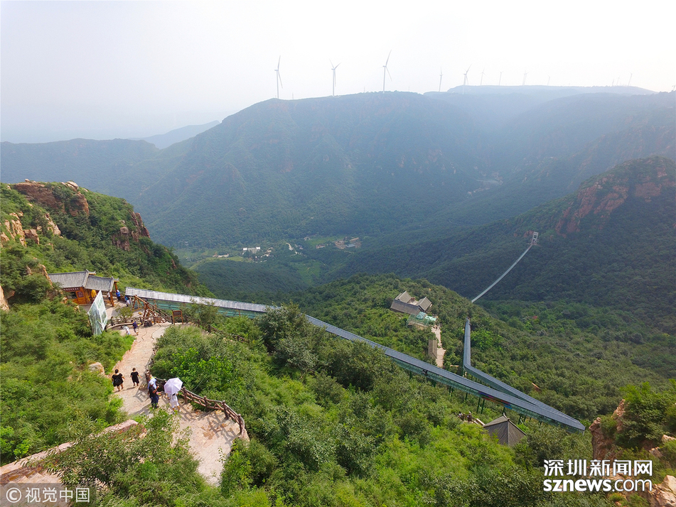 實拍地坑院景區(qū)玻璃天橋 全長318米高108米