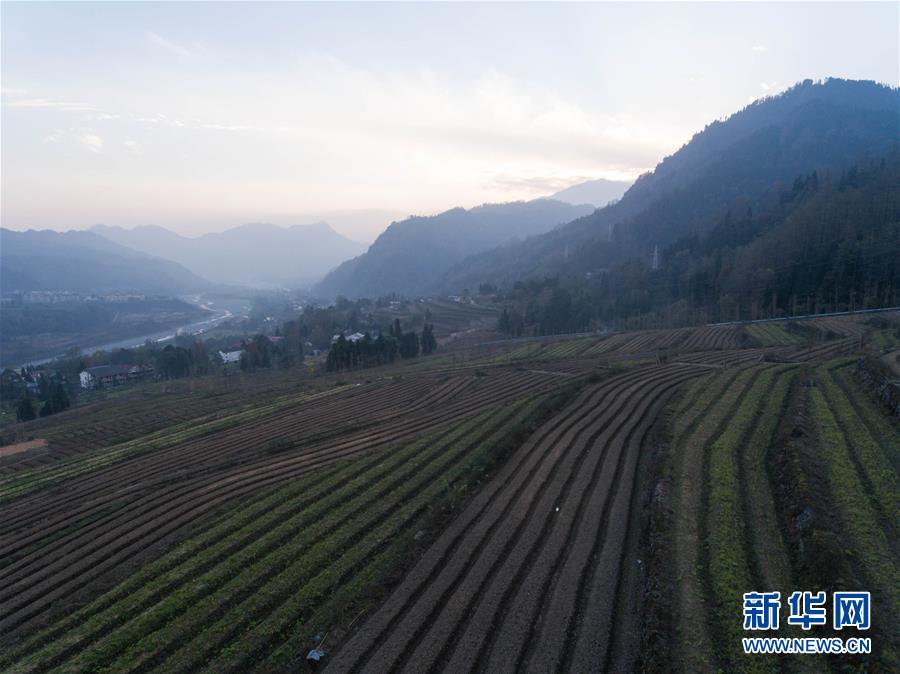 這是四川成都彭州市寶山村一角(12月3日無人機拍攝)。上世紀70年代,寶山村在大山中開出了715畝高產(chǎn)梯田。 新華社記者 江宏景攝
