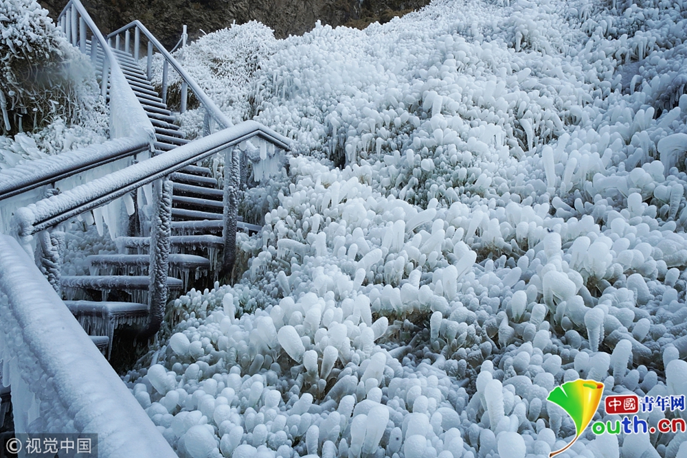 近日,冰島的塞里雅蘭瀑布在零下12攝氏度的氣溫下結(jié)冰,畫面彷如天外仙境。圖片來(lái)源:視覺(jué)中國(guó)