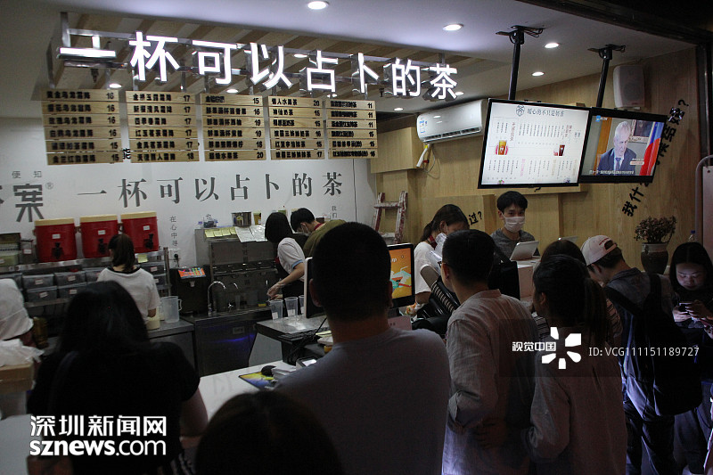 2018年4月21日,重慶,萬達(dá)廣場附近有一家新開業(yè)的網(wǎng)紅答案茶的冷飲店,這家答案茶冷飲店人氣異?;鸨T前已排起了兩條“長龍”。 |