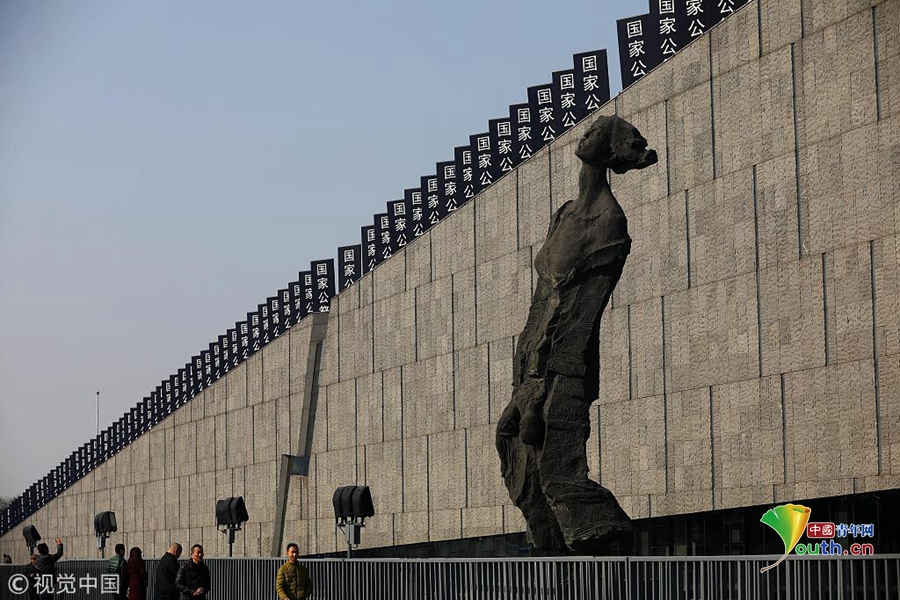 2018年12月12日,民眾在侵華日軍南京大屠殺遇難同胞紀(jì)念館外參觀。圖片作者:泱波