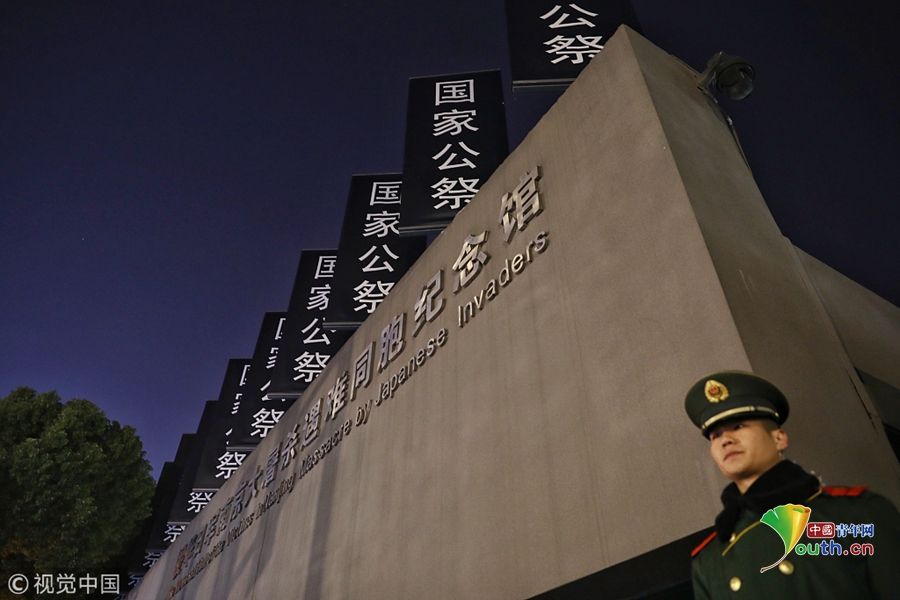 2018年12月12日晚,江蘇南京,侵華日軍南京大屠殺遇難同胞紀(jì)念館沿線道路莊嚴(yán)肅穆、安保和工作人員做好了準(zhǔn)備,迎接第五個南京大屠殺死難者國家公祭日。2018年是南京大屠殺慘案發(fā)生81周年,第五個南京大屠殺死難者國家公祭儀式將于12月13日舉行。圖片作者:尼克