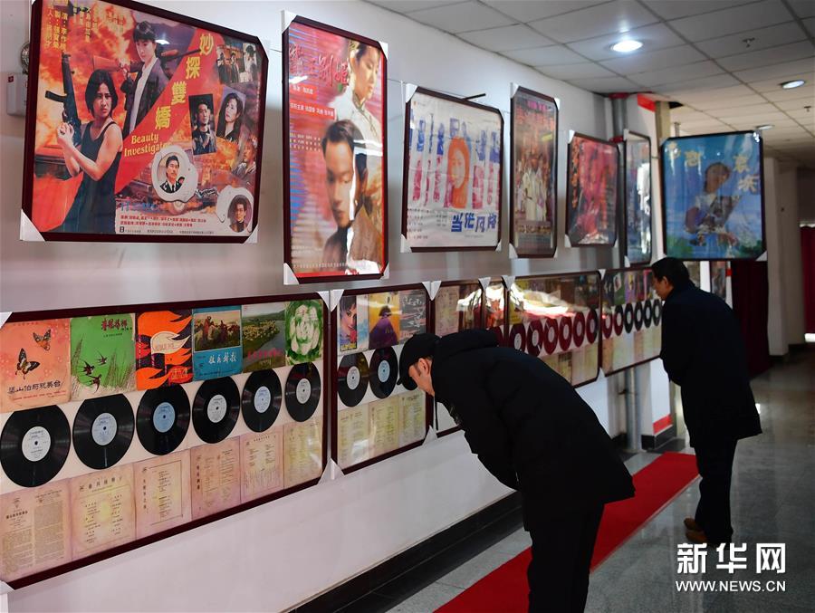 12月12日,觀眾在洛陽隋唐百戲城觀看展出的電影海報與老唱片。新華社記者馮大鵬攝