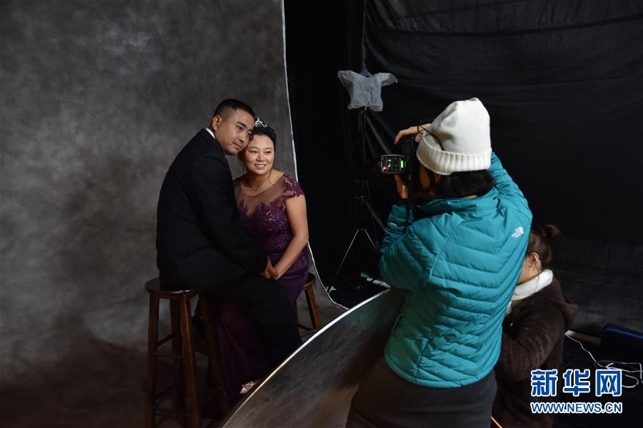 攝影師羅嫻為農民工夫妻拍攝婚紗照(12月10日攝)。 新華社記者 白田田 攝