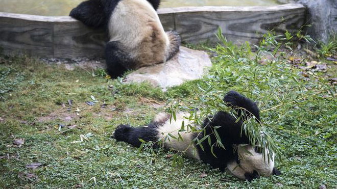 昆明大熊貓:多吃少動 美美過冬
