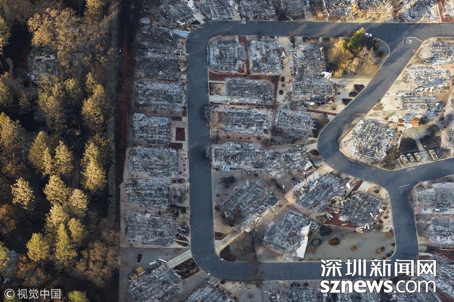 深圳新聞網(wǎng)2018年12月13日訊 當(dāng)?shù)貢r(shí)間2018年12月10日,美國(guó)加州,成千上萬(wàn)英畝的土地被野火燒毀,數(shù)百棟建筑變成灰燼?!翱财铡贝蠡鹗羌又輾v史上最致命和破壞性最大的野火,導(dǎo)致88人死亡,超過(guò)18000座建筑被毀。