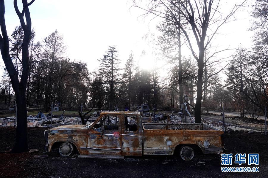 這是12月7日在美國加利福尼亞州比尤特縣天堂鎮(zhèn)拍攝的山火廢墟。 新華社記者吳曉凌攝
