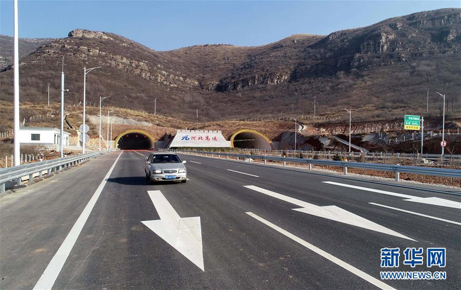 12月16日,一輛汽車行駛在京秦高速公路二期工程河北玉田境內(nèi)的鳳凰頂隧道路段(無人機(jī)拍攝)。 新華社記者楊世堯攝