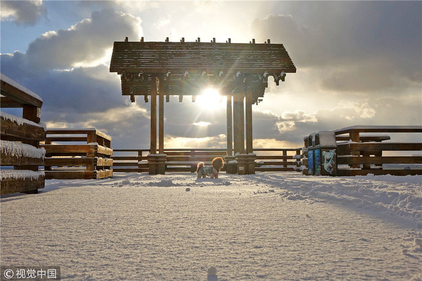 山東煙臺(tái)迎來初雪 獨(dú)特的海濱雪景美若童話