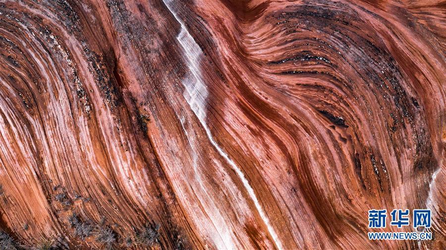 2018年10月21日在陜西省延安市安塞區(qū)坪橋鎮(zhèn)航拍的王家灣丹霞地貌。 大地之色,俯仰之間;壯美山河,是我的祖國。2018年,新華社記者操縱無人機(jī)“飛閱”華夏大地,在最美的時節(jié),定格下她的色彩斑斕。 新華社記者 陶明 攝