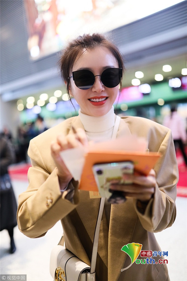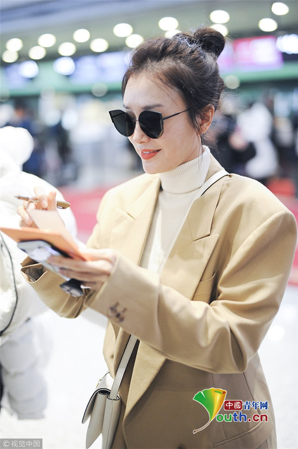 2018年12月11日,上海,秦嵐現(xiàn)身機場。她穿淺西裝配高領(lǐng)毛衣溫暖又時尚,梳丸子頭清新減齡,機場獲粉絲送告白信,嬌羞嘟嘴賣萌少女范十足。