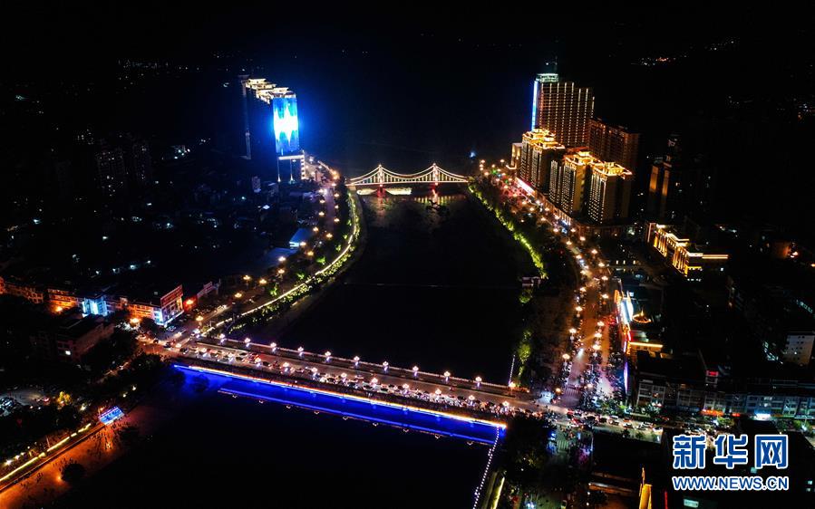 夜幕下的荔浦市中園橋一帶(12月17日無(wú)人機(jī)拍攝)。 新華社記者張愛(ài)林?jǐn)z