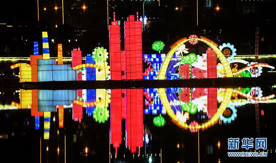 荔浦河中的花燈(12月17日攝)。  新華社記者張愛(ài)林?jǐn)z