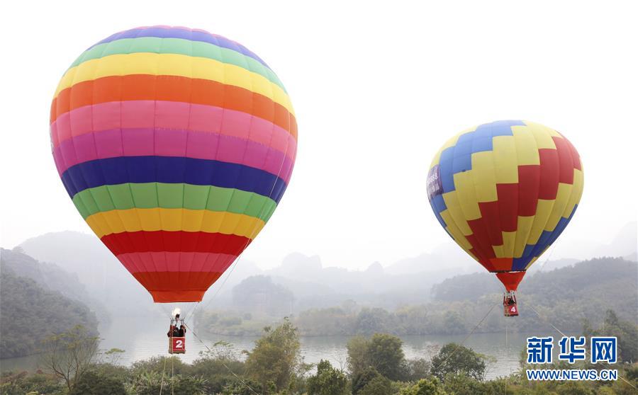 12月20日,游客乘坐熱氣球欣賞丹霞山美景。