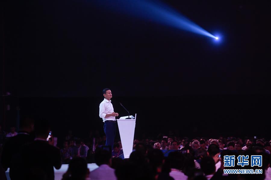 馬云在2018杭州·云棲大會(huì)主論壇上演講(9月19日攝)。 新華社記者黃宗治攝