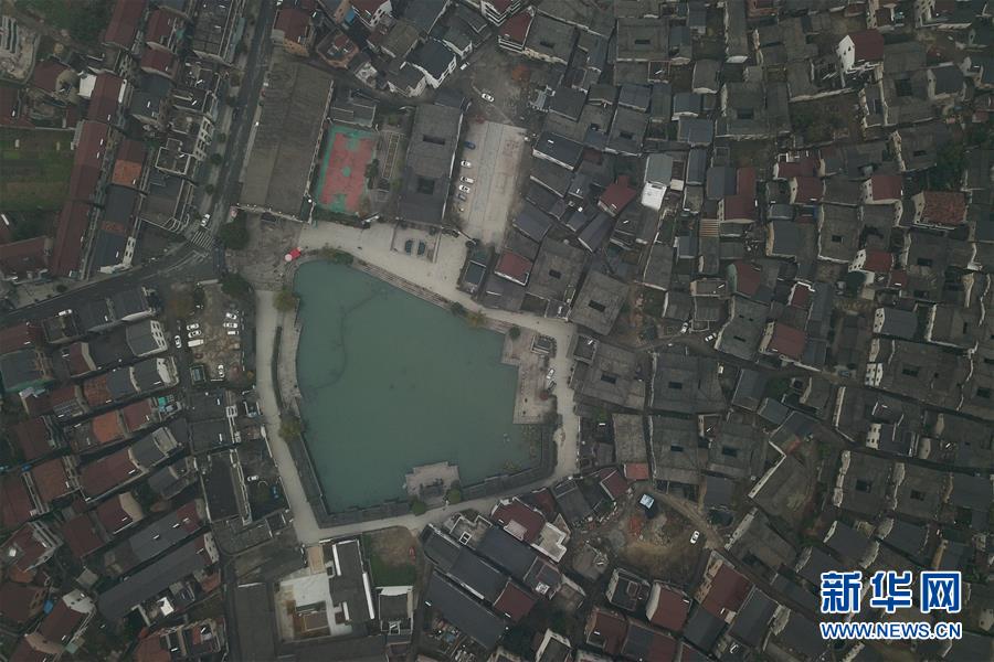 12月21日無人機拍攝的桐廬縣江南鎮(zhèn)深澳村。深澳村有保存完整的古建筑群落,常年吸引大批游客參觀。新華社記者黃宗治攝