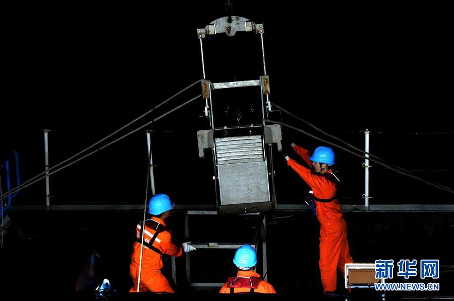 科考團隊成員在船上回收箱式采樣器(12月20日攝)。