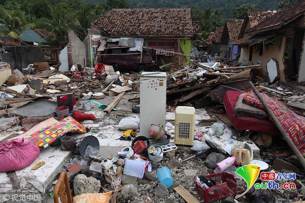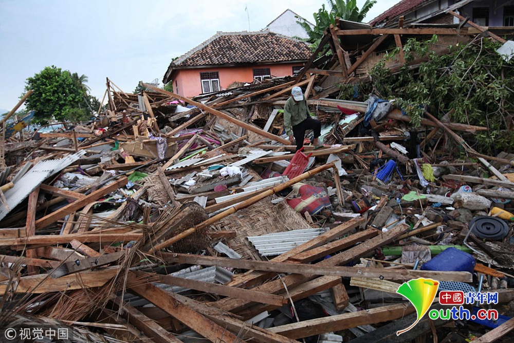 當?shù)貢r間2018年12月24日,印度尼西亞萬丹省卡里塔,現(xiàn)場遍地廢墟,一片狼藉。22日夜間的一次海嘯襲擊了印度尼西亞爪哇島西海岸。印尼國家災難機構24日表示,印尼火山引發(fā)的海嘯造成的死亡人數(shù)已經上升至373人,1000多人受傷。