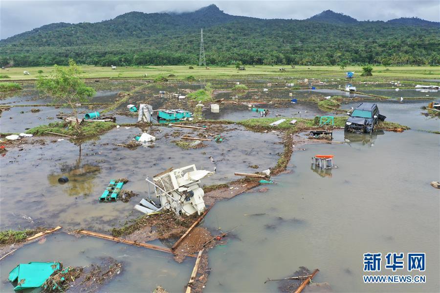 這是12月24日拍攝的印尼萬丹省一處被海嘯損毀的農田。 印度尼西亞抗災署發(fā)言人24日說,印尼西部巽他海峽海嘯死亡人數(shù)已經上升至373人。 新華社記者 杜宇 攝