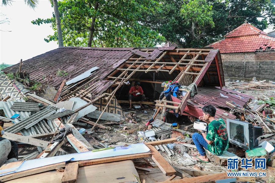 這是12月24日在印尼萬丹省拍攝的被海嘯沖毀的房屋。 印度尼西亞抗災署發(fā)言人24日說,印尼西部巽他海峽海嘯死亡人數(shù)已經上升至373人。 新華社記者 張可任 攝