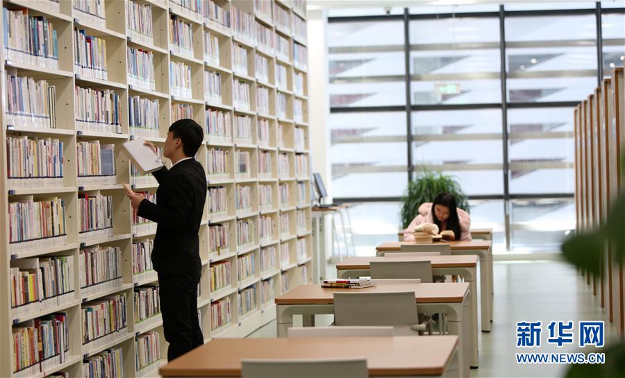 12月27日,在天津?yàn)I海新區(qū)圖書(shū)館,工作人員(左)在閱覽室中擺放圖書(shū)。 濱海新區(qū)圖書(shū)館位于天津?yàn)I海文化中心,2017年10月1日正式開(kāi)館,設(shè)計(jì)立意為“濱海之眼”和“書(shū)山有路勤為徑”。圖書(shū)館現(xiàn)有藏書(shū)60多萬(wàn)冊(cè),一年多來(lái)接待讀者約280萬(wàn)人次,已成為濱海新區(qū)的文化“新地標(biāo)”。 新華社記者伍婧丹攝