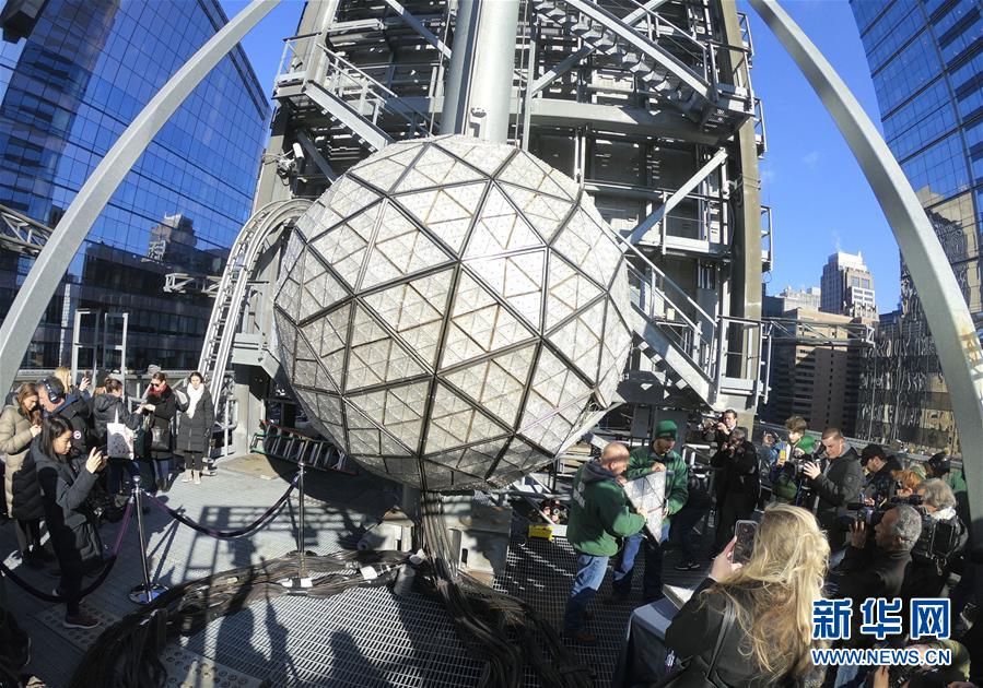 這是12月27日在美國(guó)紐約時(shí)報(bào)廣場(chǎng)拍攝的水晶球安裝現(xiàn)場(chǎng)。 每年12月31日晚,紐約時(shí)報(bào)廣場(chǎng)都會(huì)舉辦跨年慶典,當(dāng)午夜鐘聲響起之時(shí),水晶球緩緩落下,慶祝新的一年到來。 新華社記者 張墨成 攝