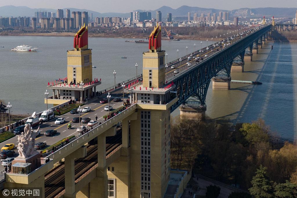 2018年12月29日,江蘇省南京市,中午12點,維修改造后的南京長江大橋全線恢復(fù)通車。2018年12月29日還是南京長江大橋公路橋建成通車50周年紀念日。