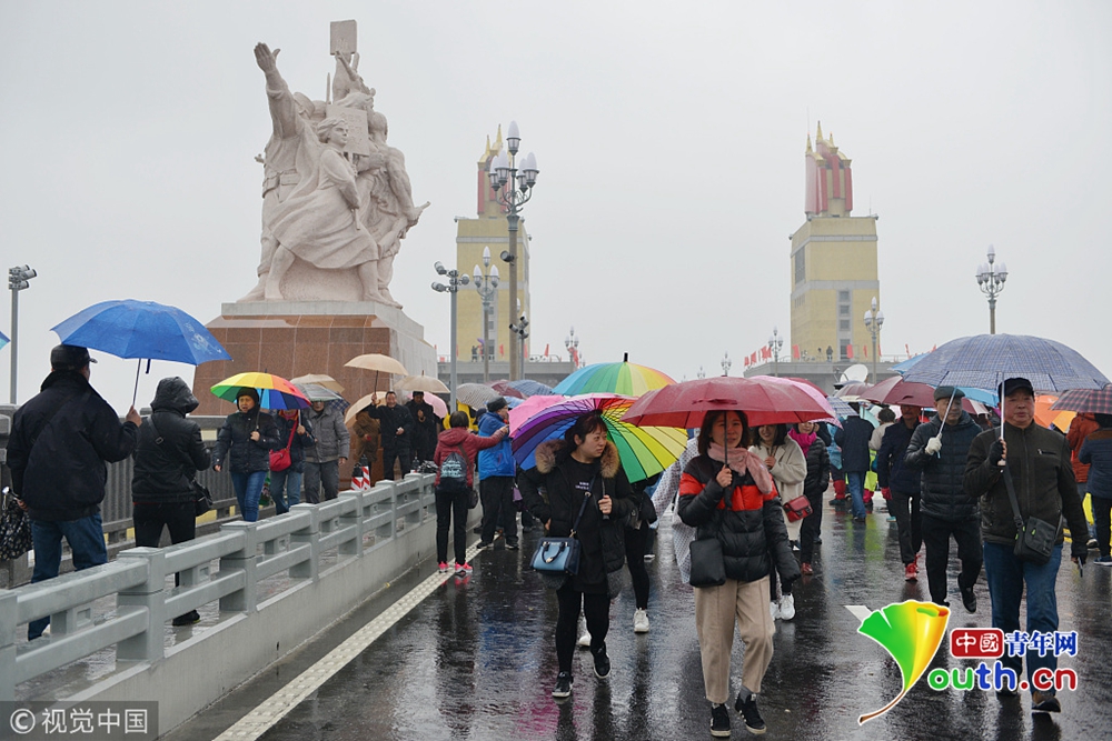 2018年12月26日,南京。南京長江大橋維修改造工程竣工通車在即,12月26日至28日三天向公眾開放,12月26日,“市民開放日”首日,早晨九時(shí)許,雖然下著雨,但記者在南京長江大橋入口和橋上看到,如織的市民打著傘來到大橋,整個(gè)橋上全是撐傘觀看的市民,足有萬人,十分壯觀。