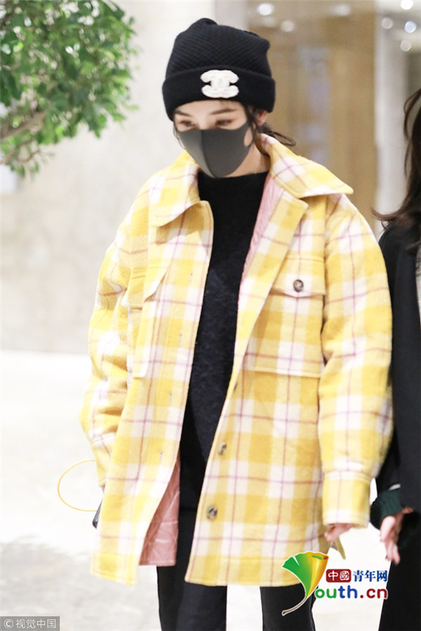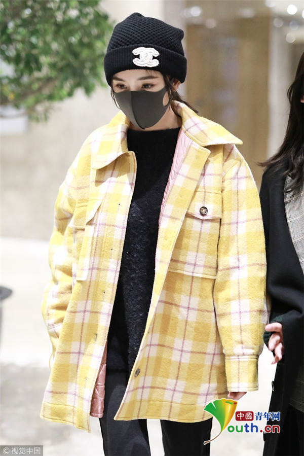 2018年1月6日,上海,楊冪現(xiàn)身某酒店。她戴著帽子口罩,身穿黑色套裝,而外面搭配的奶黃格子外套卻瞬間減齡,明亮又惹眼,無(wú)懼寒冬露著纖細(xì)腳踝,依舊是那個(gè)很會(huì)穿搭的大冪冪。