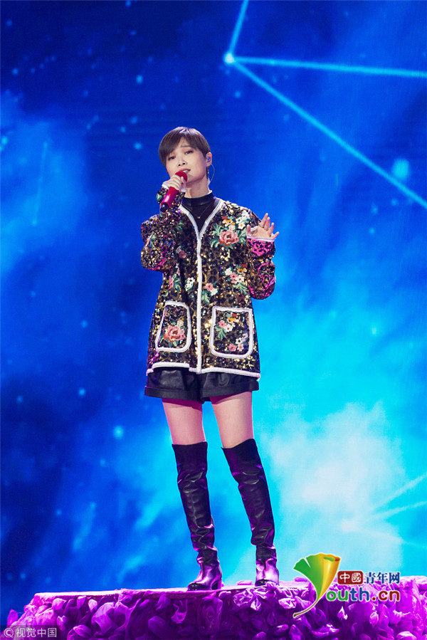 2019年1月8日晚,北京,李宇春亮相第17屆電影頻道電影百合獎(jiǎng)?lì)C獎(jiǎng)典禮,并演唱了一首《你是如此難以忘記》。當(dāng)晚的她一身閃花衣搭配黑色短褲長靴,一雙長腿吸睛十足,盡顯女人柔美和帥氣的雙重魅力,她手放胸前鞠躬向觀眾致意,謙遜有禮。