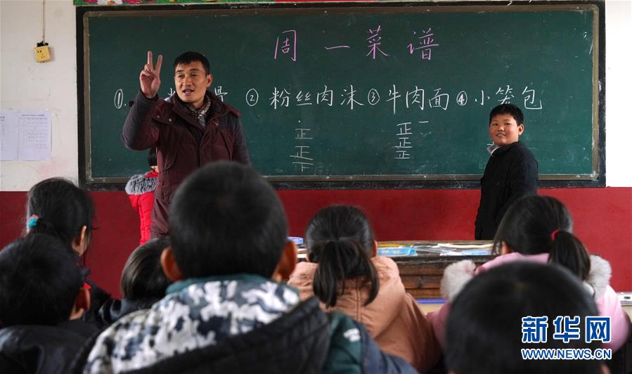 1月4日,章站亮(左)和學生們召開“每日食譜選舉會”,共同選出下次學生們想吃的餐點。 新華社記者 胡晨歡 攝