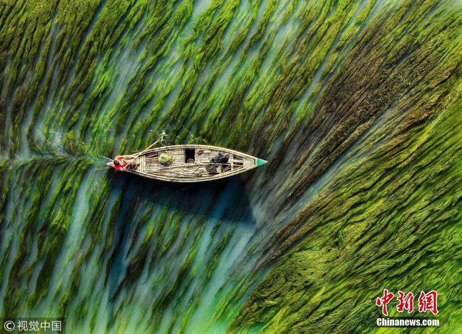 中國(guó)新聞網(wǎng)1月14日訊(具體拍攝時(shí)間不詳),孟加拉國(guó)烏拉帕拉,漁船在水流和藻類的映襯下前行,畫(huà)面看起來(lái)就像水彩畫(huà)一般。圖片來(lái)源:視覺(jué)中國(guó)