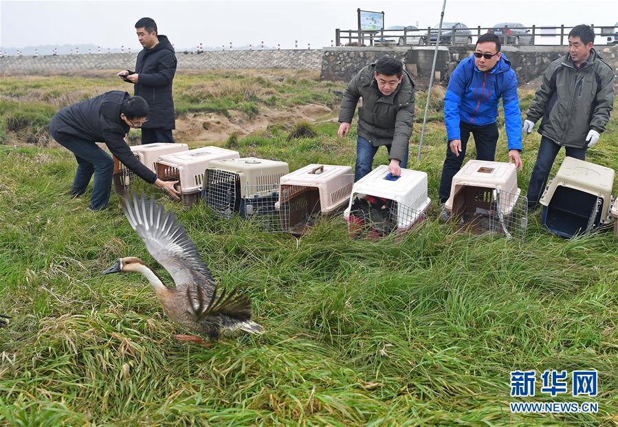 當(dāng)日,江西省野生動(dòng)植物救護(hù)繁育中心、天津市野生動(dòng)物救護(hù)馴養(yǎng)繁殖中心在江西鄱陽(yáng)湖國(guó)家級(jí)自然保護(hù)區(qū)將16只被救治的珍稀候鳥(niǎo)成功放飛。其中1只東方白鸛為國(guó)家一級(jí)保護(hù)動(dòng)物,2只大天鵝、3只鴛鴦為國(guó)家二級(jí)保護(hù)動(dòng)物。