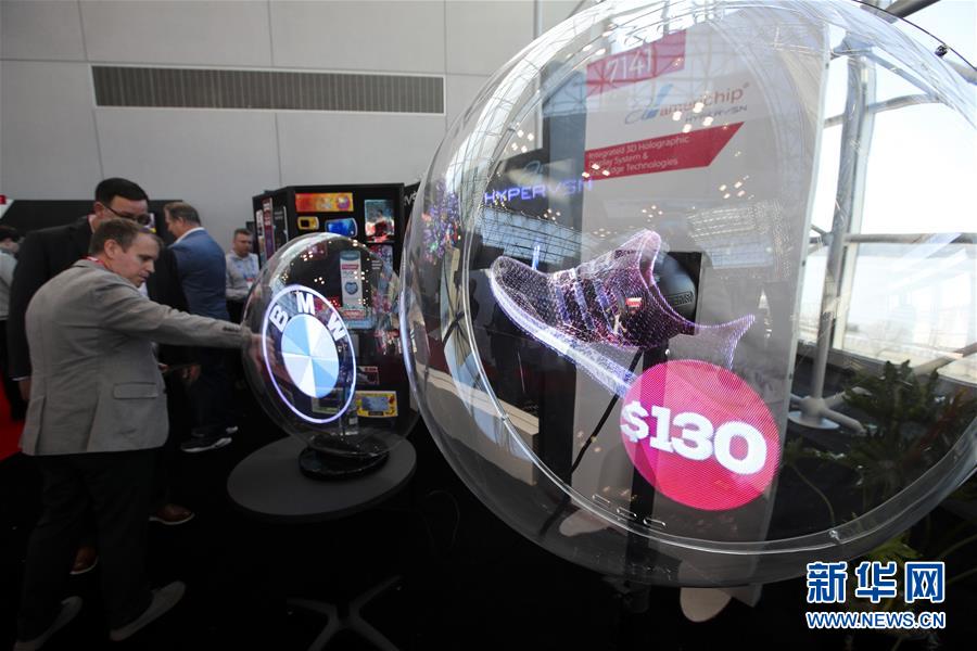 1月14日,在美國紐約舉行的全國零售商聯(lián)合會年度大會的“創(chuàng)新實(shí)驗(yàn)室”展廳,參觀者觀看使用3D全息投影技術(shù)的商品展示設(shè)備。 美國全國零售商聯(lián)合會年度大會于1月13日至15日在紐約舉行,許多來自世界各地的展商帶來使用新技術(shù)開發(fā)出的軟硬件產(chǎn)品,向觀眾展示未來零售業(yè)的新愿景。 新華社記者 王迎 攝