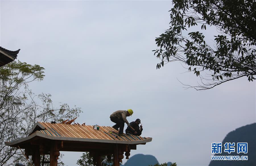 1月15日,工人在廣西融水苗族自治縣融水鎮(zhèn)夢嗚苗寨建設(shè)房屋。新華社記者 陳君清 攝