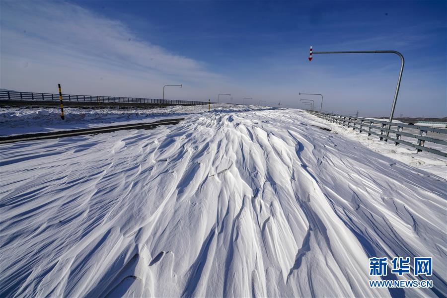 1月15日,在新疆瑪依塔斯風區(qū)內,大風將白雪吹到公路上。 瑪依塔斯風區(qū)位于新疆西北部額敏縣境內。這里東西風交替頻繁,一年大風天數超過150天,是世界上罕見的暴風雪災害地段。駐守在這里的新疆塔城公路管理局額敏分局瑪依塔斯應急保障基地,近年來連續(xù)裝備拋雪機等冰雪搶險救災裝備,有力地保障了這條道路的交通安全。 新華社記者趙戈攝