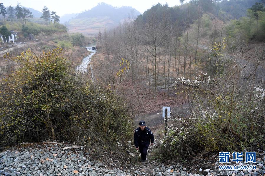 1月16日,汪茂才在巡線途中。 今年52歲的汪茂才是合肥鐵路公安處黃山站派出所歙縣警務(wù)室的一名線路民警,他所在的警務(wù)室負責(zé)皖南山區(qū)皖贛鐵路線約80公里范圍內(nèi)的線路安全。從警30年來,線路巡查、鐵路安全知識宣傳等是汪茂才的日常工作。多年來的徒步巡線,讓汪茂才練就了一雙快腿,十公里的路,汪茂才兩個小時就能走完。 汪茂才負責(zé)的鐵路沿線周邊村莊較多,很多房子都是沿鐵路線而建,有些村民為了圖方便,違規(guī)穿越鐵路線。加強對鐵路沿線居民的安全宣傳教育,成為汪茂才的一項重要工作,沿線村民的安全意識也越來越高。 對汪茂才這樣的線路民警來說,大多數(shù)時候都是“獨行俠”,“當(dāng)線路民警就要耐得住寂寞,守得住孤獨,與大山為伴,與線路為友,盡己所能,為鐵路安全運行保駕護航?!蓖裘耪f。 新華社記者劉軍喜攝