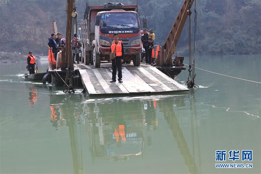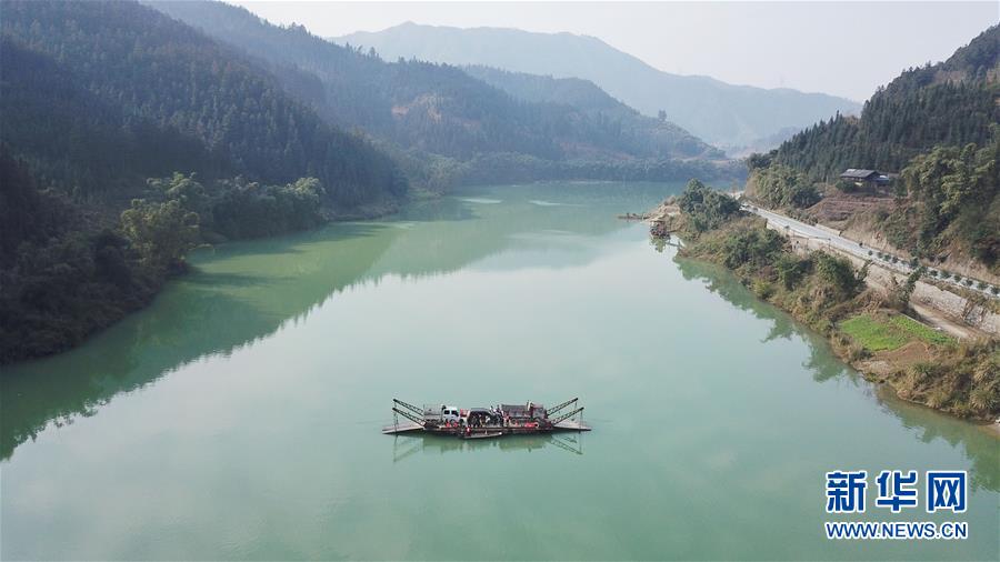 1月22日,渡輪在八吉渡口接送群眾(無(wú)人機(jī)拍攝)。新華社記者 歐東衢 攝