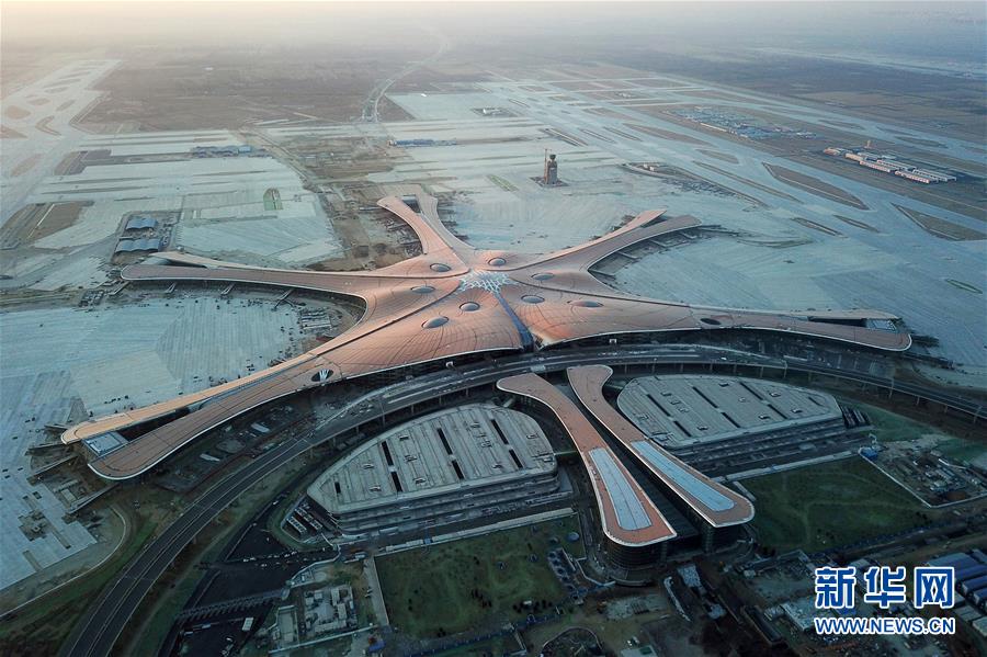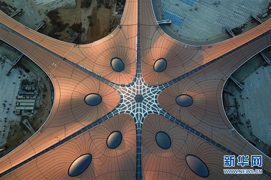 2018年12月19日,北京大興國際機場航站樓的屋面已基本完工,一只金色“鳳凰”完整地出現(xiàn)在北京城南。航站樓的室內裝修在有條不紊的推進中。