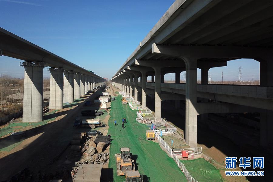 這是建設中的北京大興國際機場高速公路和北京軌道交通新機場線(2018年12月29日無人機拍攝)。新華社記者 鞠煥宗 攝