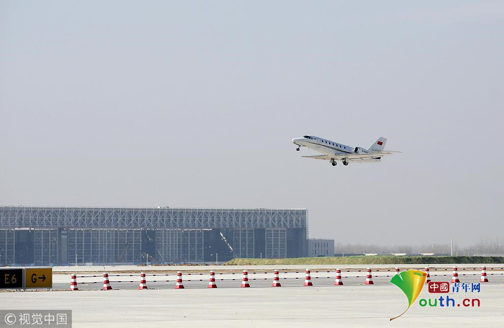 2019年1月22日,首架校驗飛機掠過北京大興國際機場上空。視覺中國
