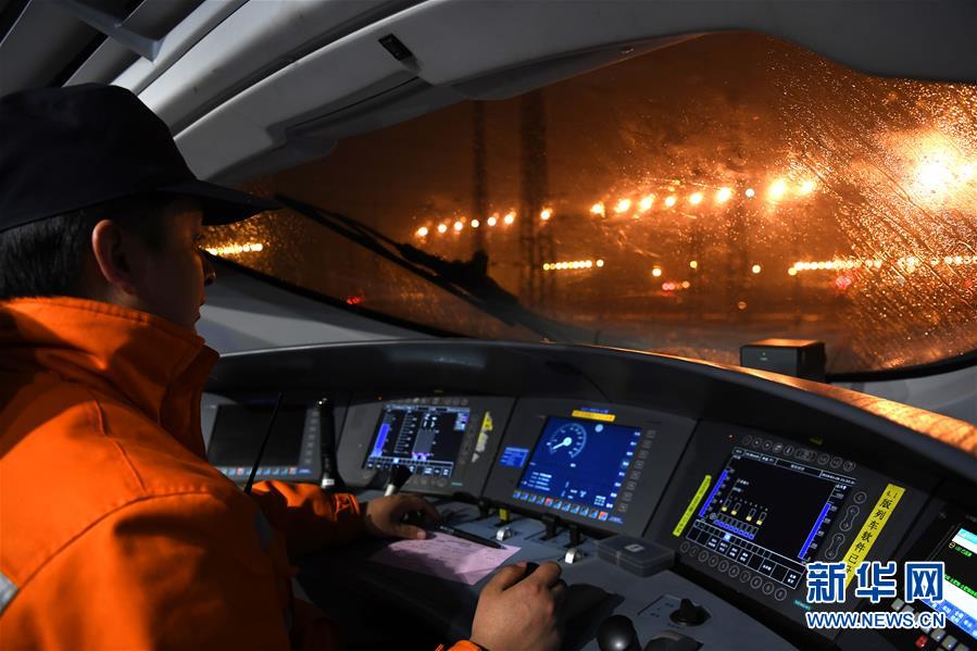 1月29日,王瑞在動車上進行調(diào)車作業(yè)。新華社記者劉軍喜攝