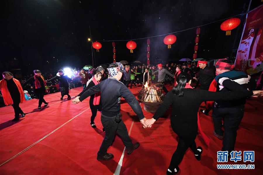 1月31日,隆興村七社村民在“農(nóng)家春晚”上表演舞蹈。 新華社記者 王全超 攝