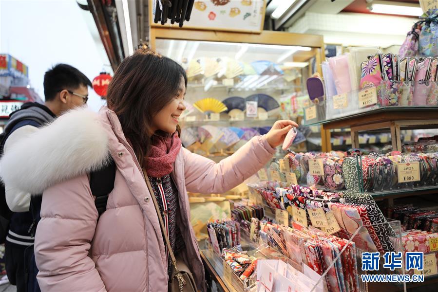 2月8日,在日本東京,中國(guó)游客在淺草的商店街選購(gòu)商品。 雖然中國(guó)人過(guò)春節(jié)的傳統(tǒng)是返鄉(xiāng)回家,但越來(lái)越多的國(guó)人選擇在春節(jié)期間走出國(guó)門,利用春節(jié)假期外出旅游。 新華社記者 杜瀟逸 攝
