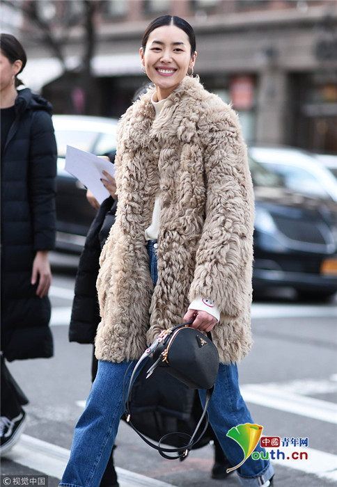 當地時間2019年2月10日,美國紐約,2019秋冬紐約時裝周:劉雯現身街頭。她身穿毛絨外套帥氣養(yǎng)眼,走在街頭回眸一笑氣質迷人。