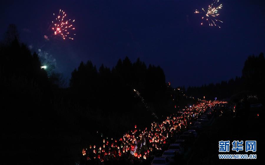 2月18日,群眾在四川省南充市嘉陵區(qū)金寶鎮(zhèn)點(diǎn)亮“蠐蟆燈”。 當(dāng)日是農(nóng)歷正月十四,夜幕降臨后,川渝等地?cái)?shù)萬名群眾在四川省南充市嘉陵區(qū)金寶鎮(zhèn)匯聚,點(diǎn)亮“蠐蟆燈”,敲著鑼鼓唱著歌謠,將“蠐蟆”送到幾公里外的田邊或者河邊燒掉,祈福健康平安。星星點(diǎn)點(diǎn)的燈光在鄉(xiāng)間小路閃爍移動,場面壯觀熱烈。 “送蠐蟆”祈福這一習(xí)俗源于清朝,歷經(jīng)演變成為川東北地區(qū)一個(gè)古老而神秘的地方民俗節(jié)日。 新華社記者 江宏景 攝